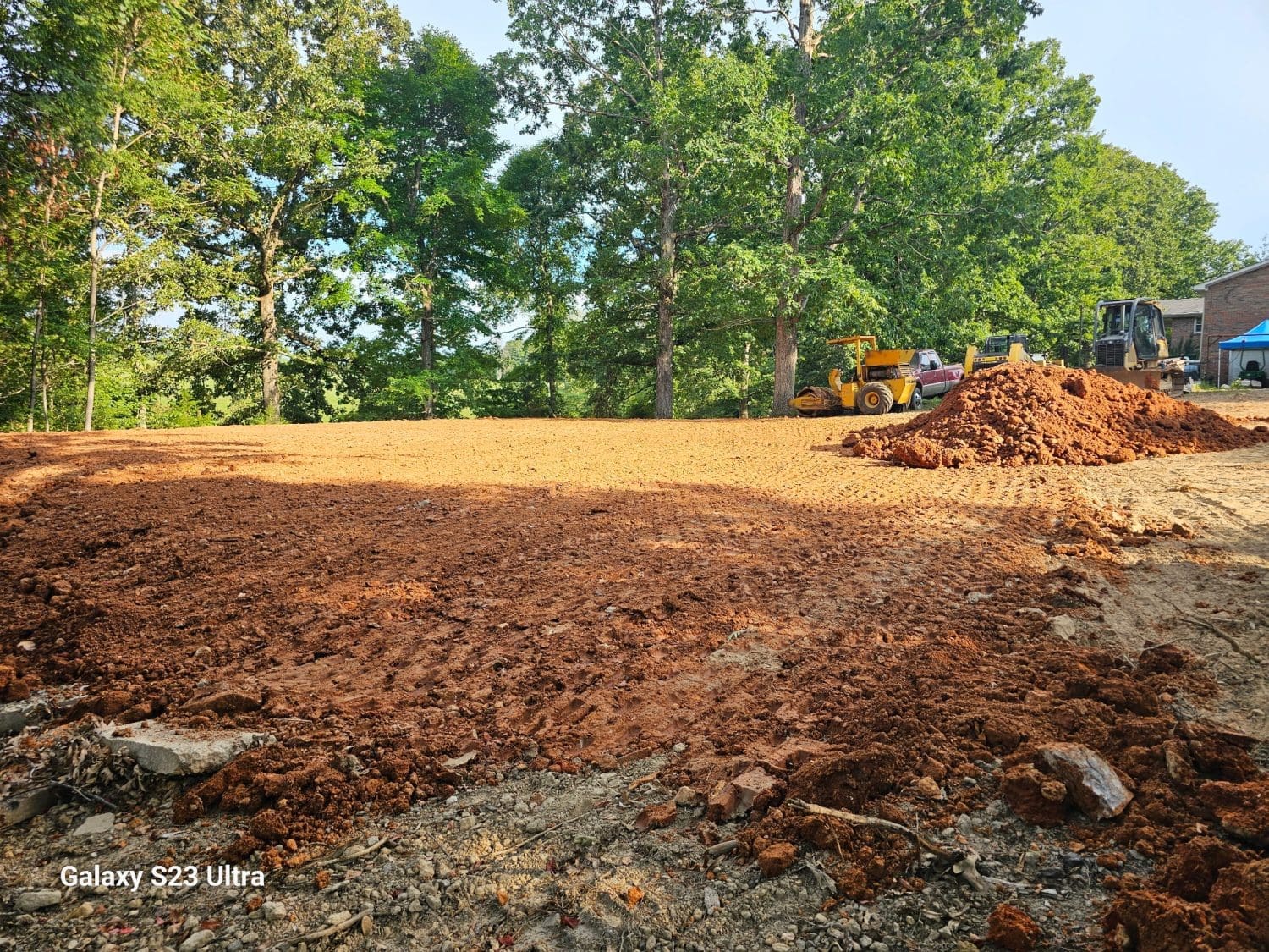 Each layer was compacted using heavy equipment and checked for consistency. Proper compaction removes air pockets and strengthens the soil, which helps prevent future cracks or foundation movement.