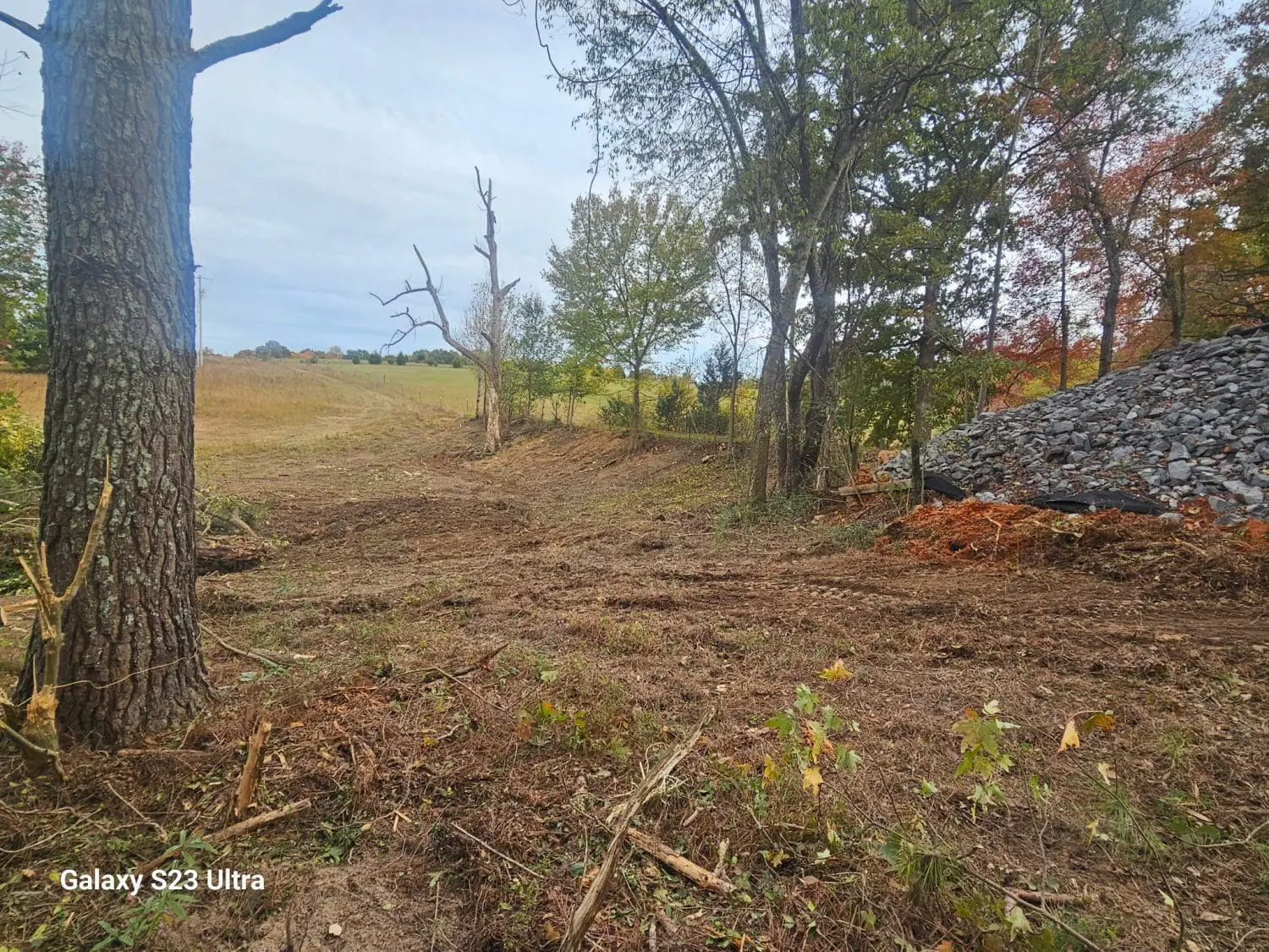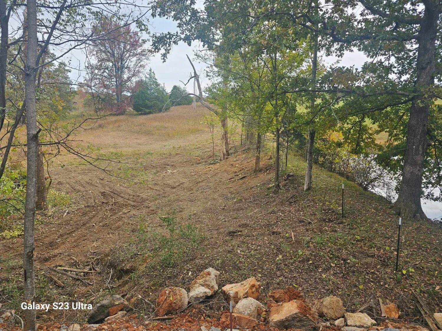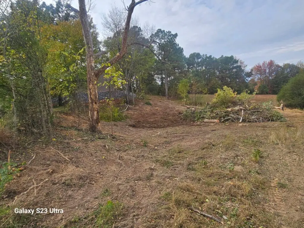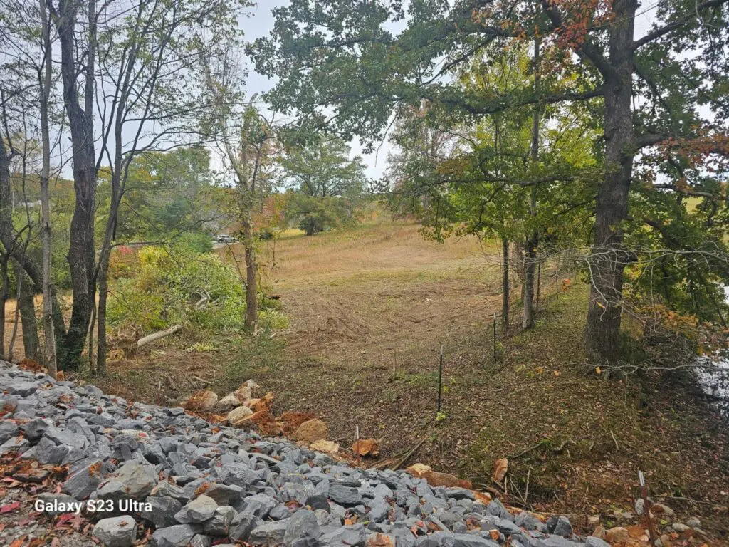 After just two days of steady work, the difference is already dramatic. About three-quarters of the clearing is done, and the view behind the lake has completely opened up. It’s amazing how much cleaner and more functional a property can look once brush and trees are cleared properly.
