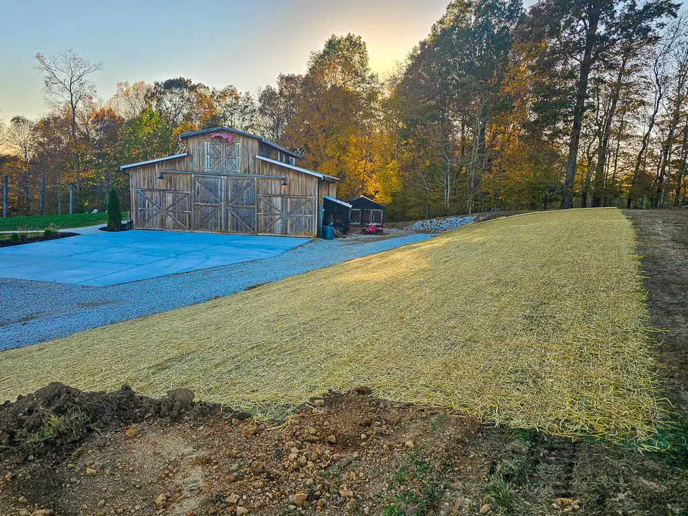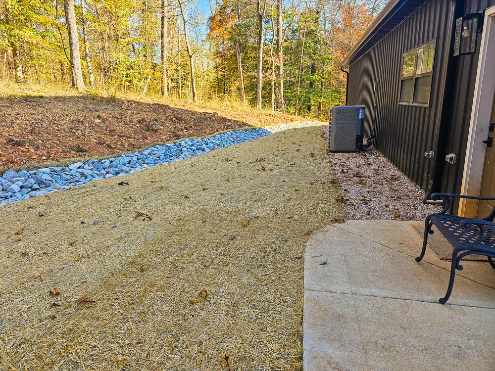 Erosion matting helps hold soil in place while vegetation becomes established.
